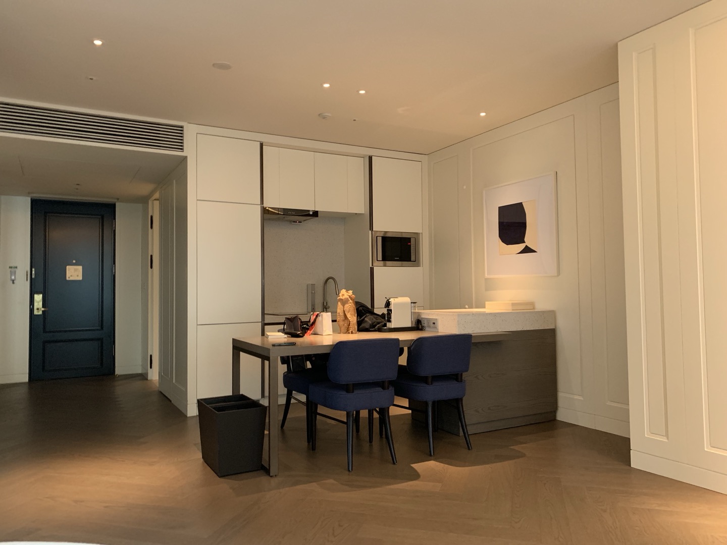 소피텔 앰배서더는 기본적으로 외부 음식 반입이 금지라고 합니다. 그런데 패밀리 스위트룸은 설거지가 가능한 싱크대부터 최신식 정수기, 다이닝 바, 쿠쿠 밥솥, 전자레인지, 냄비, 후라이팬, 커틀러리 등 요리를 해먹기에 전혀 부족함이 없이 준비되어 있습니다. 심지어 세탁기와 식기세척기까지 구비되어 있어 아이들을 데리고 2박 이상 숙박하기에는 부족함이 없습니다.