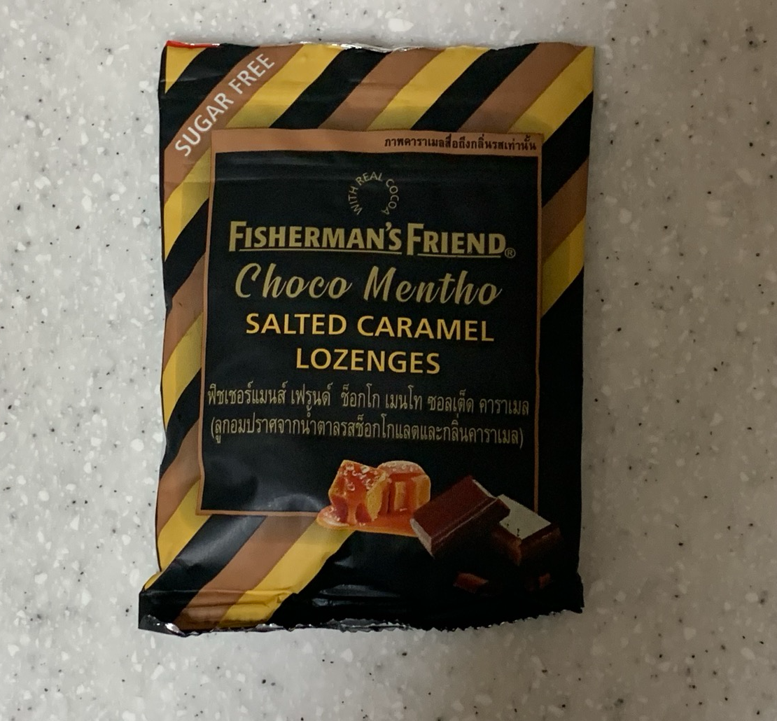 원래 영국 제품으로 알고 있는데, 한국에 잘 없어서 태국 방콕에 가면 피셔맨스 프렌드 민트 많이들 사오시죠? 네, 이건 또 다릅니다. 무려 솔티드 캬라멜 초코맛 민트입니다. 겉으로 보기에는 당연히 초콜릿 아니야? 라는 생각이 드시겠지만 이건 엄연히 민트입니다. 먹고 나면 입에는 적당히 상쾌한 느낌이 남습니다.